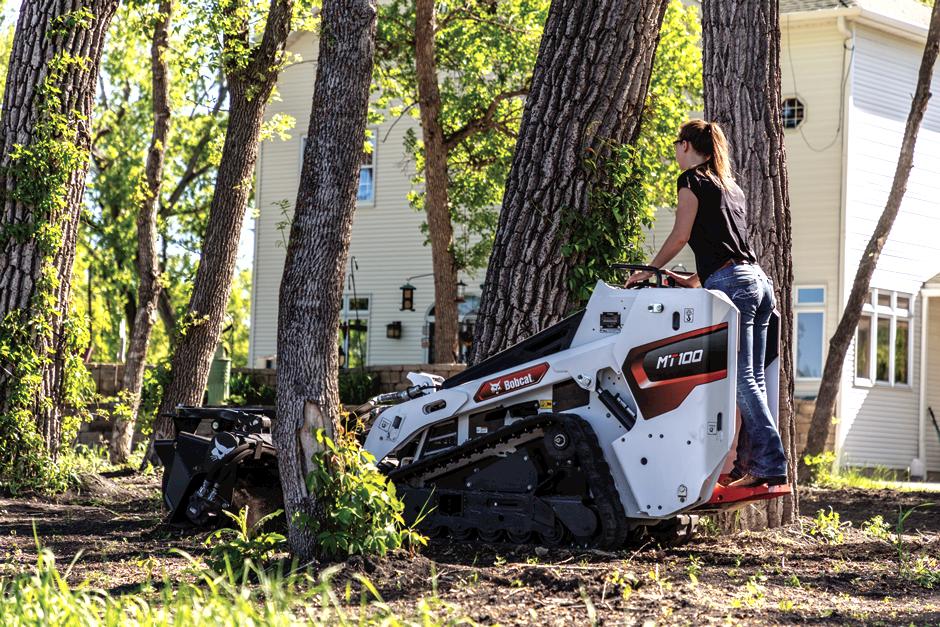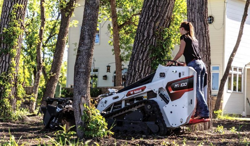 No need for wheelbarrows, shovels or other hand tools when you roll onto jobsites with the Bobcat® MT100 mini track loader. It goes through gates, doorways and other narrow spaces with ease. The machine also delivers a big boost in power with a 1,000-lb. rated operating capacity, powerful breakout force and impressive lift height. The optimized roller spacing on the MT100’s track system improves ride quality for enhanced operator comfort and confidence when working long days. Easy, tool-free access to maintenance areas and advanced safety features, including neutral start interlocks, are standard on the MT100 mini track loader, while permanently sealed rollers eliminate the need for daily roller maintenance and decrease downtime.