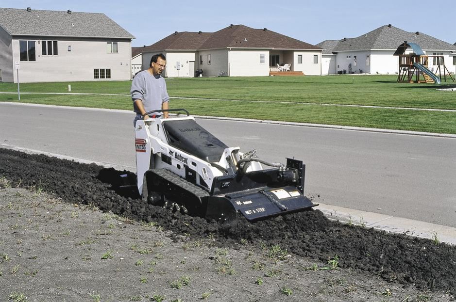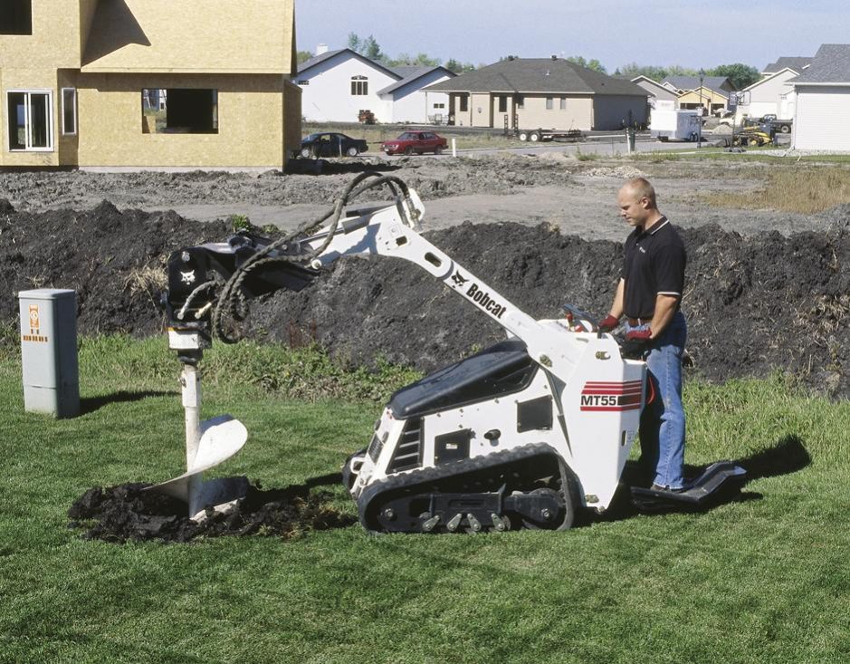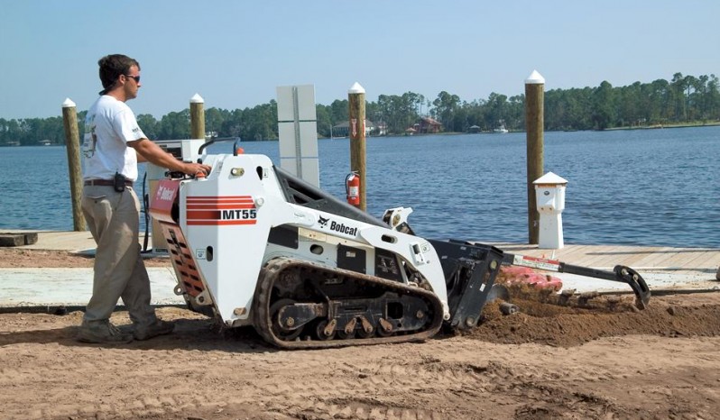 The Bobcat® MT55 mini track loader boasts more power to tackle big jobs in close quarters with impressive traction and lifting abilities. It turns quickly in its tracks, treads lightly over soft ground and lawns and provides endless work-saving opportunities using many Bobcat attachments. Used by itself or as a complement to bigger loaders, it excels as a work-saver.