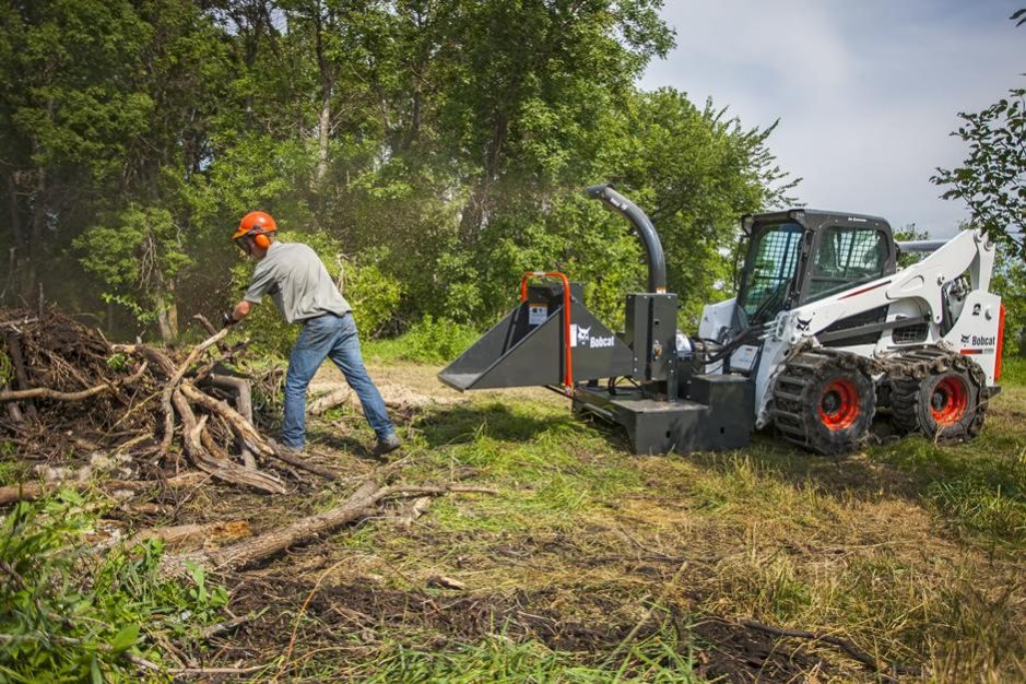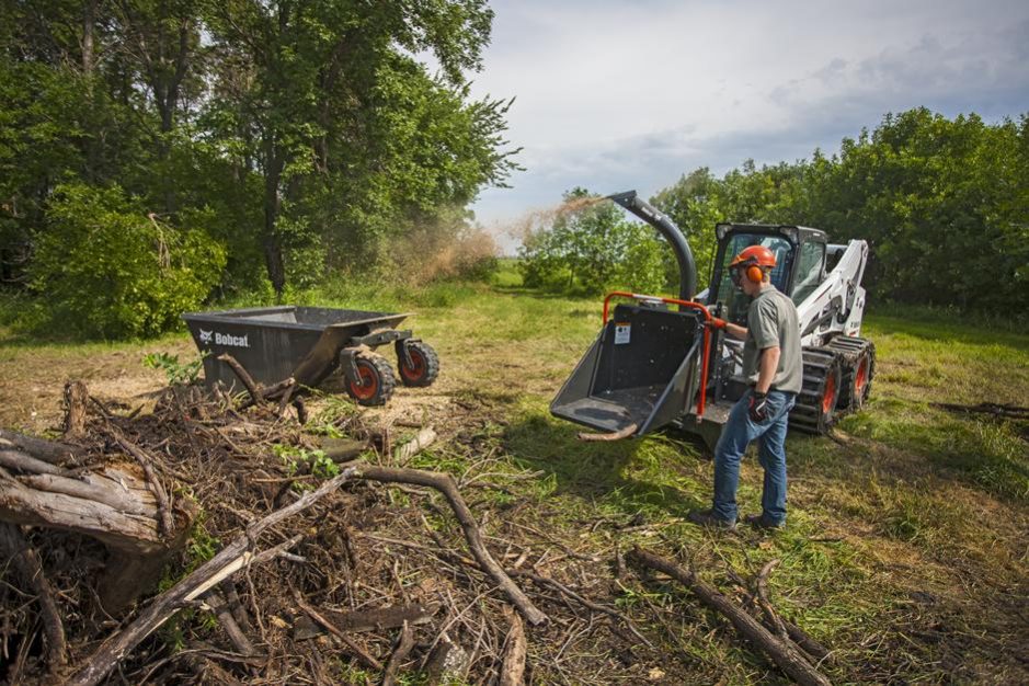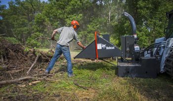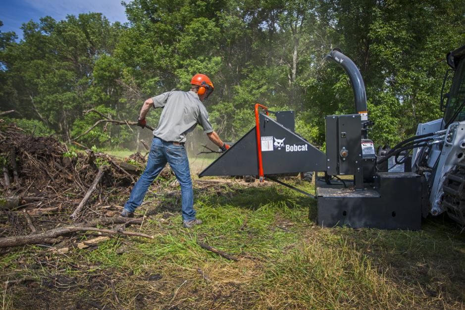 Unlike pull-type chippers, the Bobcat® chipper attachment can perform chipping jobs virtually anywhere! The compact design of the chipper attachment can tackle tough terrain. And it operates in any environment where a loader can travel, allowing wood mulching right on site rather than having to haul wood somewhere else.