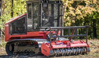 Fecon introduces the latest addition to their lineup of forestry mulchers, the Stage-5 compliant FTX300 Mulching Tractor. This low-ground pressure (3.4 psi) tractor features an oscillating carriage with 30” track shoes, providing balanced traction in hard or soft conditions. A spacious cab features air suspension and a heated seat, as well as a new larger touchscreen IQAN display, and keyless ignition with security, for operator comfort and control. A tilting cab and wide engine compartment doors on the side and read, simplify access for maintenance and service. Powered by a Cummins 6.7 engine that delivers 310 net HP, and an aggressive 115 gpm, 5,600 psi high flow hydraulic system, this mid-sized tractor has ample power for forestry attachments. The FTX300 features a BH120 forestry mulcher with variable speed motors and three optional rotor systems, including Fecon’s Depth Control Rotor (DCR) technology. With a unique combination or power, durability, size and production capability, the Fecon FTX300 replaces its predecessor the FTX290, and is ideal for larger projects in R.O. W., urban interface, and land improvement or development. Front mount lift height under cutting tools is 44”. DCR rotors feature reversible Samurai knives for fast cutting in all materials and the most efficient use of horsepower. The cutting, slicing, and splitting action of the Samurai knife as it chips is far more productive than straight edge tools or saw teeth. This productivity is further enhanced by depth control rings which provides fast cutting durability unlike any other knife-based cutting system. Fecon Power Management® ensures the intelligent distribution of power, yielding up to 20% more productivity in many environments. The cab is equipped with adjustable joystick pods, a suspension seat and 4 points of egress for operator comfort, convenience and safety. An intuitive touch-screen monitor allows operator to quickly make quick adjusts as needed without leaving the cab. Weighing in at just 31750 lbs, (14,402 kg) the FTX300 is nimble in the field, and easily transportable.