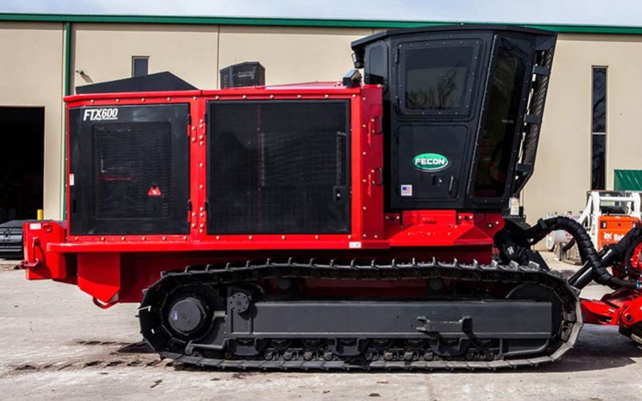 The FTX600 is the flagship of the Fecon mulching tractor fleet. An advanced blend of innovation, technology, power and performance, makes the FTX600 the tractor for high-demand, high-production work. To stay ahead of pipeline crews, power line crews and your tightest industry schedules, power, performance and reliability are critical. Performance gained with an oscillating all steel undercarriage and selectable float control, along with the Fecon BH300 hydraulic Bull Hog mulching head sets a new standard in production. Service-oriented design with large compartment doors and service-designed component positioning serve to reduce downtime and PM service time. Keeping downtime to a minimum and boosting production performance to the maximum is how we define reliability. The FTX600 is the mulching tractor that allows the operator to perform his best! Power from 600hp the Cummins QSX15 Tier III engine, combined with Sauer hydraulic pumps controlled by Fecon’s Power Management System and an IQAN machine operating system, puts this tractor in the lead on the right of way. The cab is designed for production and the long days that your schedules demand. An air ride seat and the filtered and pressurized climate controlled cab keep the operator’s performance and comfort at a high level. Tinted polycarbonate windows all around and a rear view camera with a large screen, maximize the visibility on this primary ROW performer.