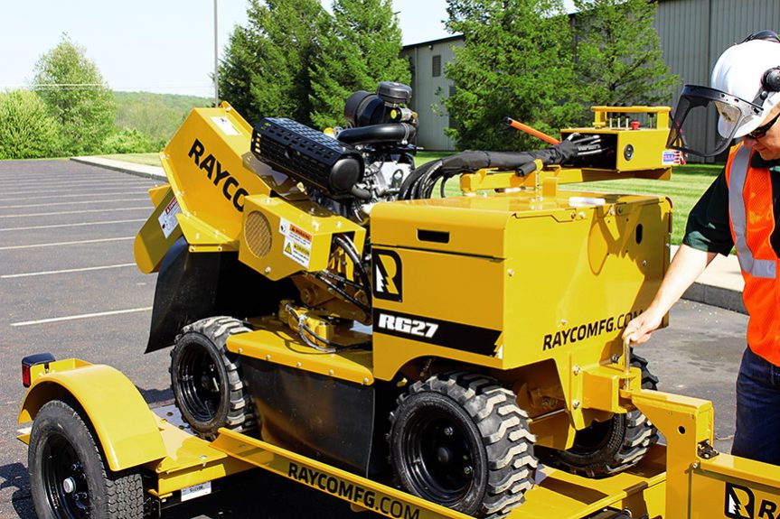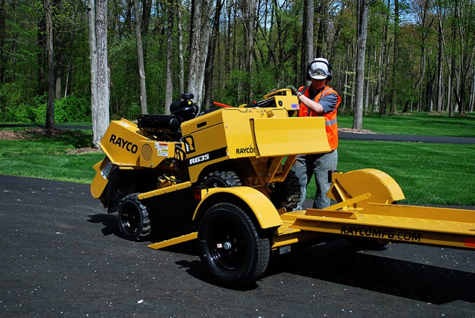 The Super Jr stump cutter is the original self-propelled, backyard stump cutter that professionals have relied on since 1986. Today, there’s a Super Jr model to fit every job and every budget. The Super Jr comes with gasoline engine power options of 27hp and 37hp. To maximize visibility while cutting, all Super Jr’s have the drivetrain located on the far side of the cutter wheel. And Rayco’s exclusive, swing-out control station gives operators the best view while cutting and swings in-line with the machine for travel through gates. Wide, floatation tires with bar tread give the Super Jr a firm grip on the terrain, and dual wheels can be added for extra stability. Rayco’s exclusive slewing ring pivot design lowers the center of gravity and lets the Super Jr cut at maximum depth across the whole swing path.