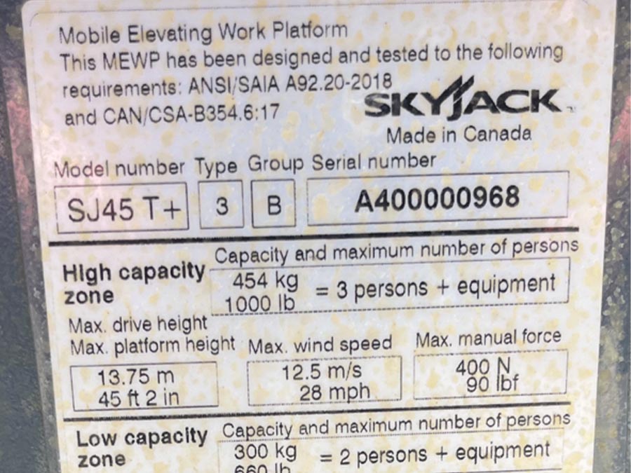 2023 Skyjack SJ45T+ with only 23 hours. This unit is in excellent condition and like new. Everything operates flawlessly and the unit just passed it’s annual inspection. Unit has been in our rental fleet since brand new and we do not have the need for it. Buy with confidence from a 40 year Bobcat dealer.